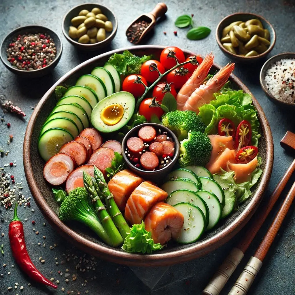 - Большое количество овощей и морепродуктов: Эти продукты богаты клетчаткой, витаминами и минералами, которые необходимы для нормального обмена веществ.