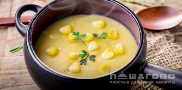 - Ингредиенты: 2 початка сладкой кукурузы, 1 луковица, 2 стакана куриного бульона, 1 стакан молока или сливок, 2 столовые ложки сливочного масла, соль, перец по вкусу.