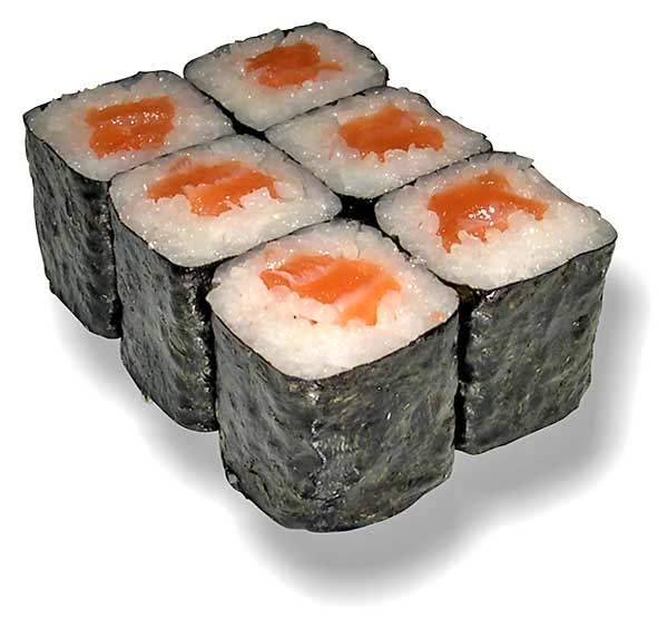 - Роллы «Филадельфия»: Рис, сливочный сыр, лосось, нори.